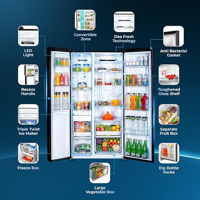 • 2-Door Side By Side Frost-Free Refrigerators: Regulate temperature settings ranging from -24°C to 9°C with magic convertible zone.