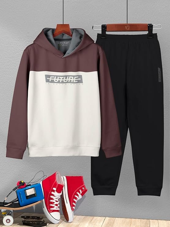 HELLCAT Printed Cotton Blend Full sleeve Hoodie T-shirt Jogger Trackpant Clothing Set for Boys