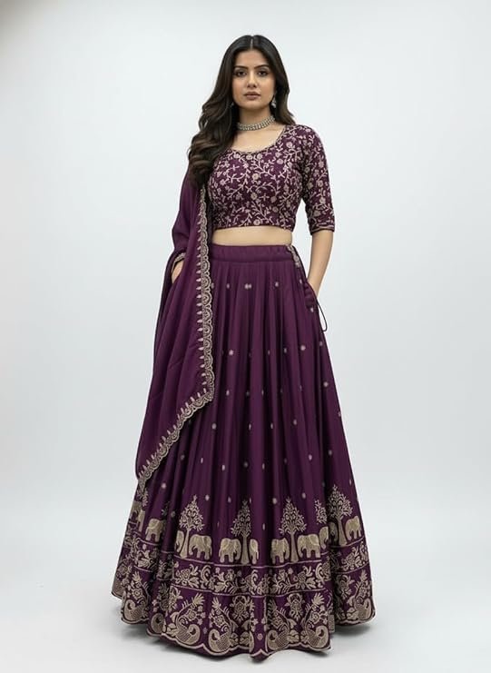 - Elegant embroidered lehenga choli set designed for weddings and festive occasions