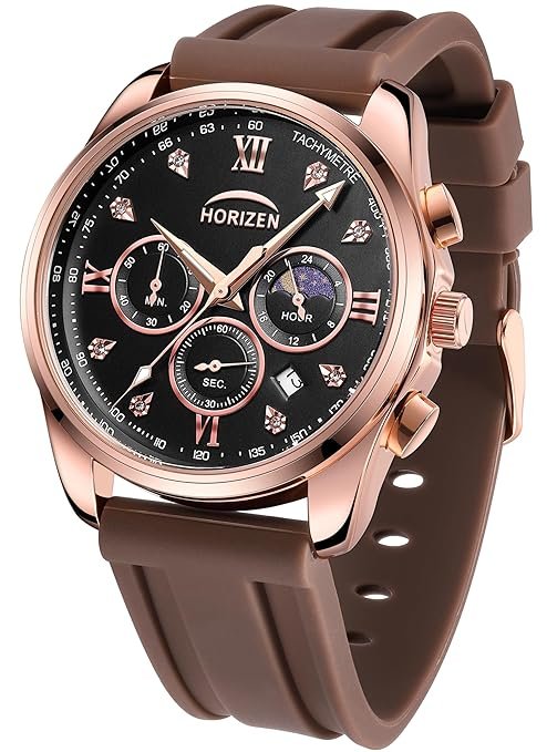 - Functional Chronographs: Stop Watch, 24-hour sub dial with Day-Moon phase; Imported Quartz movement – accurate and reliable timekeeping