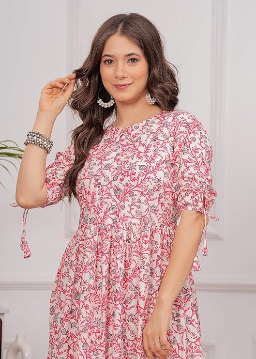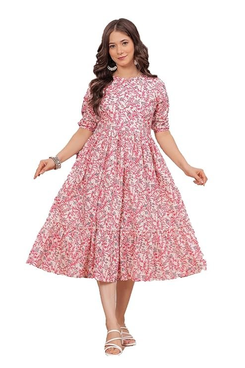 Monique Brand Women’s/Girls Cotton Kurta for Women Floral Printed Anarkali Kurta || Floral Flared Western Dress