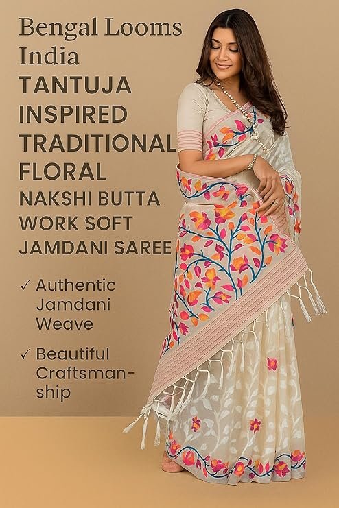 - Handwoven Traditional Jamdani Saree: Bengal looms india traditional tantuja inspired jamdani soft cotton nakshi weave floral saree for women and ladies with blouse is Exquisitely crafted with intricate nakshi work, inspired by authentic Tantuja fabric from Bengal for a timeless ethnic look.