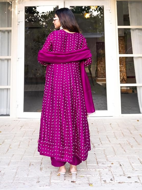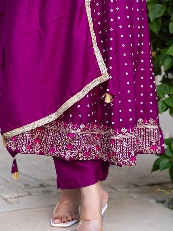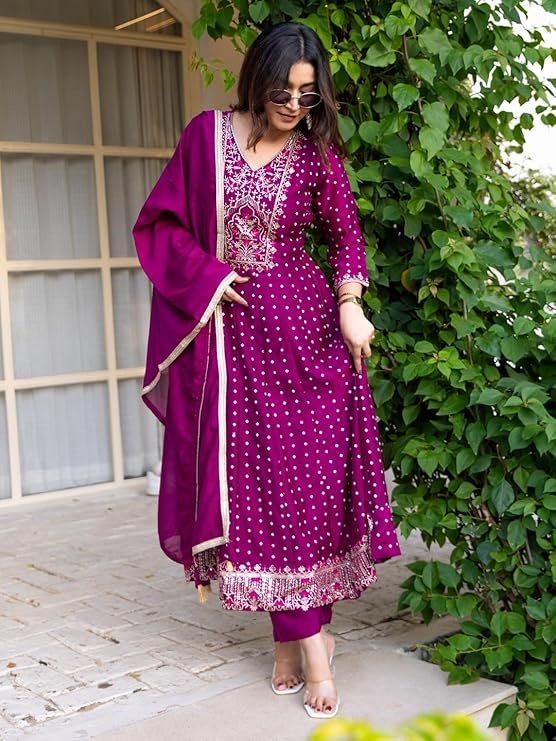 VredeVogel Women’s Embroidered Silk Blend Anarkali Kurta with Pant & Dupatta Set | Festive & Casual Ethnic Kurta Set for Women