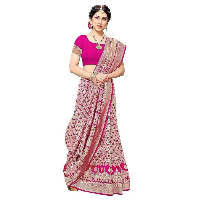 - By YASHIKA Women’s Banarasi Kanjivaram Pink Color Art Silk Saree with Blouse Material on Amazon
